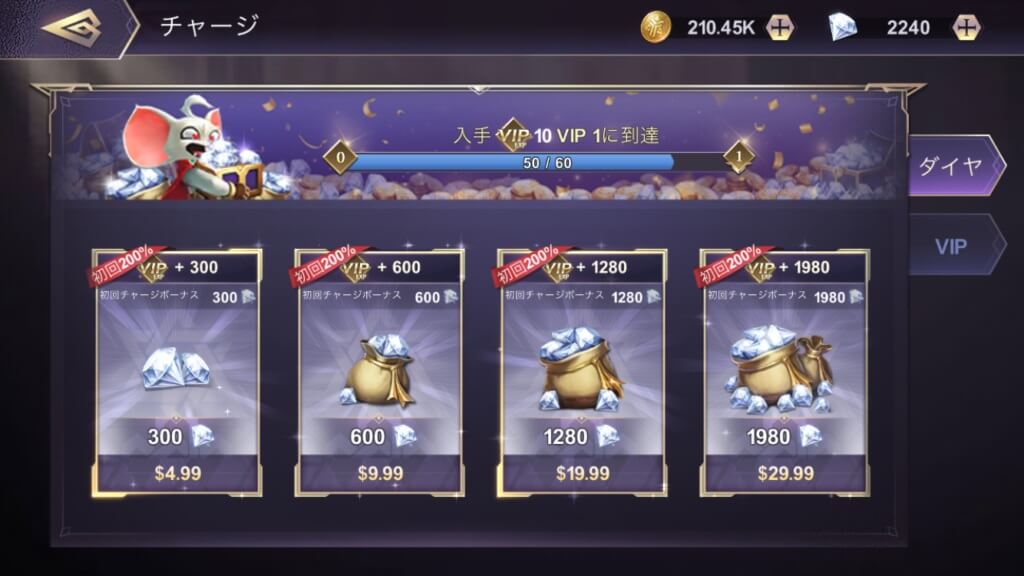 最小課金額は610円でダイヤ300個、