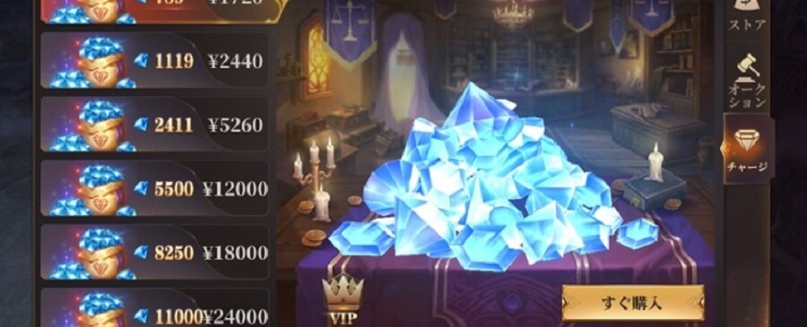 ダイヤストアでの購入やVIP特権を使用するために「ダイヤ」というアプリ内の通貨を使う必要があります。