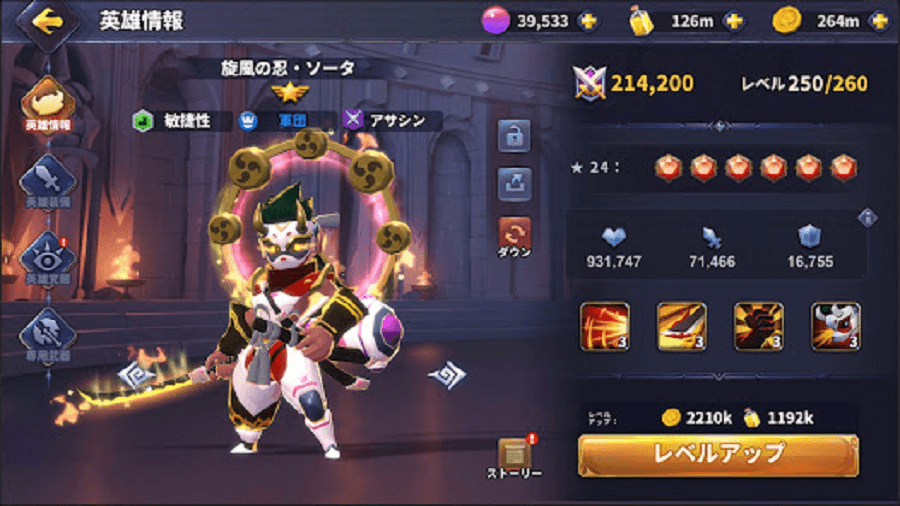 レベル上げにはゴールドとエナジー結晶が必要です。