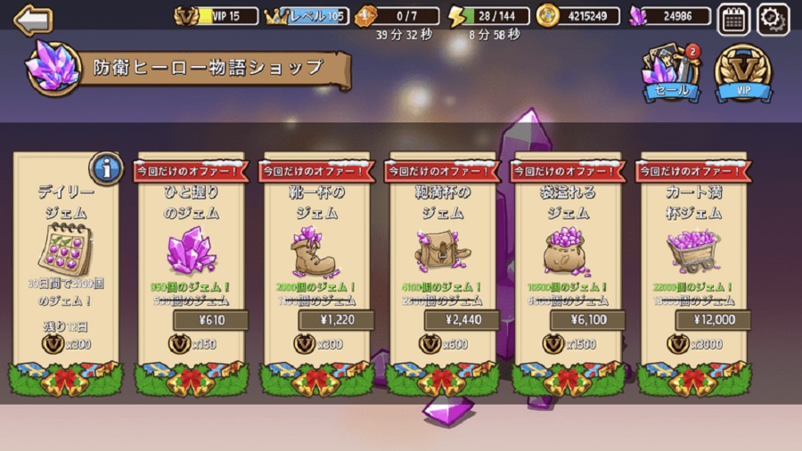 デイリージャムや新人ヒーローセットなどの商品があり、それらを購入するのもオススメ。