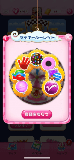 一日に一回ルーレットを回すことでアイテムを獲得することができます。