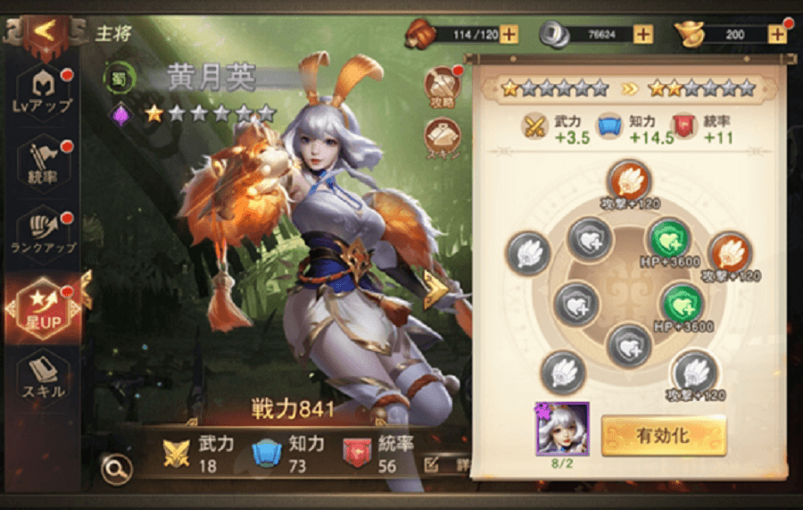 項目は、LVアップ、統率、ランクアップ、星UPです。