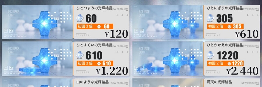 ですが、初回課金のみ入手できる光輝結晶の数が2倍になります。