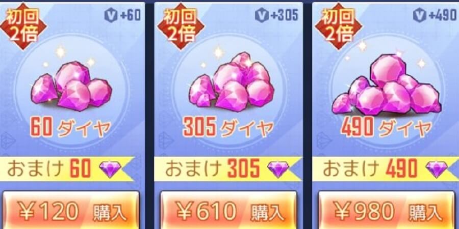 ガチャや素材アイテム購入のために「ダイヤ」というアプリ内の通貨を使う必要があります。