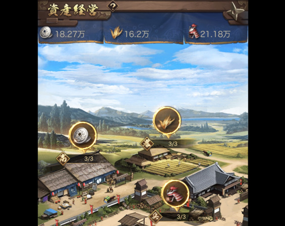 資産経営では「商業」・「農業」・「徴兵」において、銀貨、食料そして徴兵をすることができます。