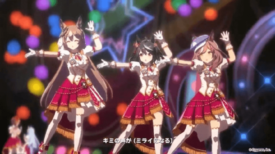 レース後に自分が好きなように編成したウマ娘達がステージでライブを行います。
